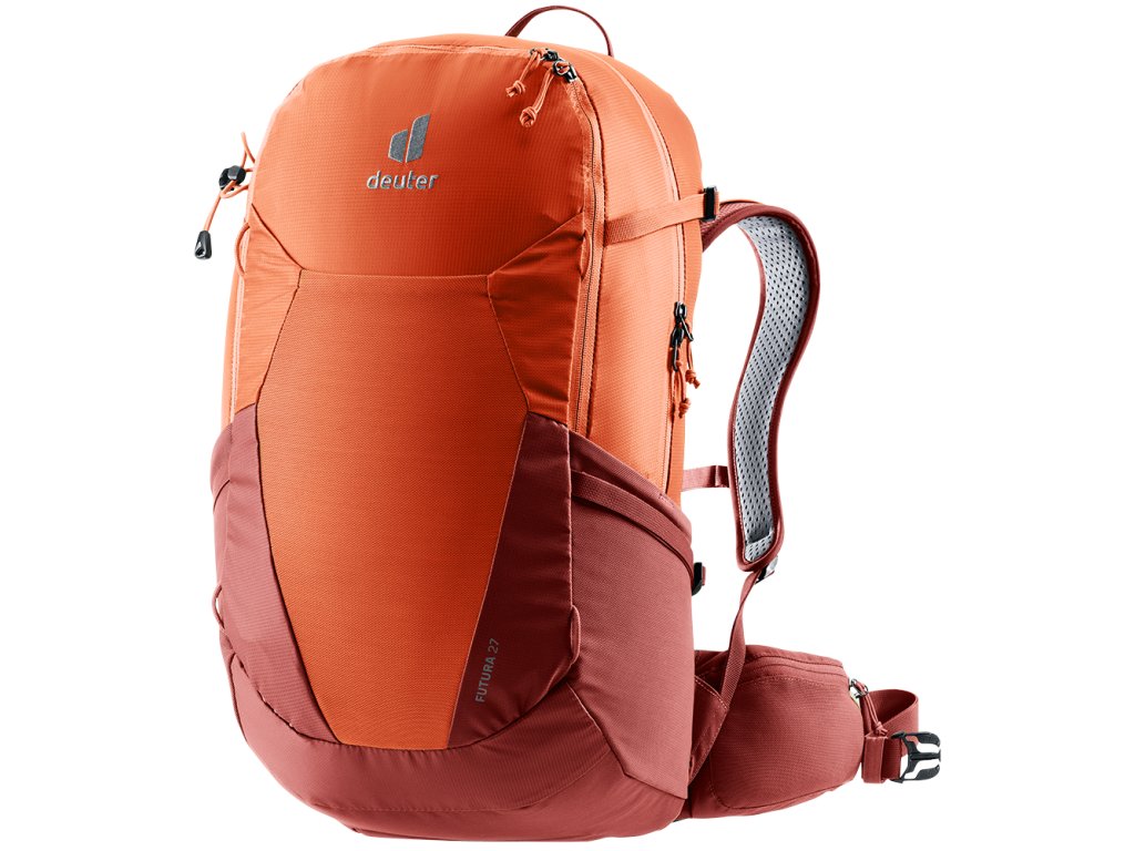 batoh pro vaše jednodenní výlety Turistický batoh Futura 27 značky deuter vám bude skvělým společníkem na vašich cestách za poznáním, ať už to budou ferraty, výlety do hor a nebo jen toulání po lese. Futura má síťku na zádech s polstry kolem páteře a perforaci na ramenních popruzích. Kovová výztuha se postará o rozložení váhy, kterou si na bedra naložíte. Přední elastickou kapsu na bundu oceníte při rozmarech počasí. Co určitě oceníte na batohu Futura : Nejprodyšnější zádový systém, kovovou výztuhu v zádech, polstrované ramenní popruhy, bederní pás, hrudní pás, 2 boční kapsy, pláštěnku, poutko na hole, kapsu na cennosti, čelní elastickou kapsu na bundu, kapsu na hydrovak 3 l, čelní kapsu jako organizér na zip, reflexní logo, kompresní popruhy, doporučené zatížení 4 - 8 kg.