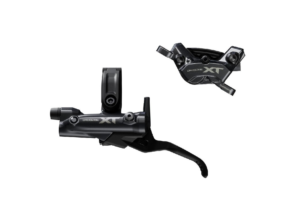 M82201JLFXSA100Hydraulická kotoučová brzda Deore XT M8220. Skládá se z páky M8200 a třmenu M8220 (4-pístkový) a hadice SMBH90. Brzdy jsou naplněny minerálním olejem s nízkou viskozitou a odvzdušněné. Objímka páky kompatibilní pro montáž řazení