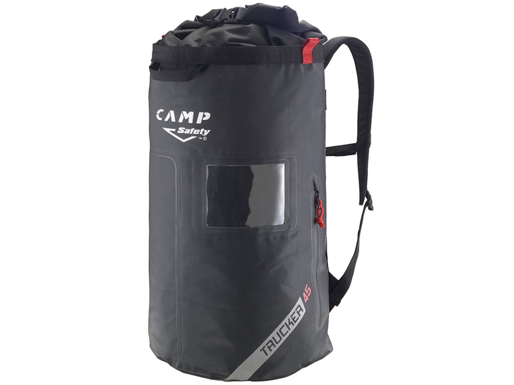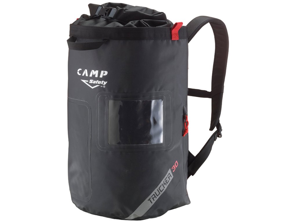 Pracovní vak vyrobený z vysoce mechanicky odolného materiálu Tarpaulin PVC 500D.Trucker je pracovní vak s horním rolovacím uzavíráním, vyrobený z vysoce mechanicky odolného materiálu Tarpaulin PVC 500D. Polstrované ramenní popruhy a pevnostní zadní madlo jsou navržené pro zatížení do max. 50kg. Kromě samotných ramenních popruhů jsou pro zvýšení komfortu polstrována i záda. Velkou výhodou je boční krátký zip, který umožňuje vstup do spodní poloviny vaku, uživatel tak nemusí celý obsah přerovnávat. Dalšími doplňky jsou pak vnější + vnitřní kapsa na zip, vnější průhledná kapsa pro štítek, materiálová oka a očka pro konce lana.