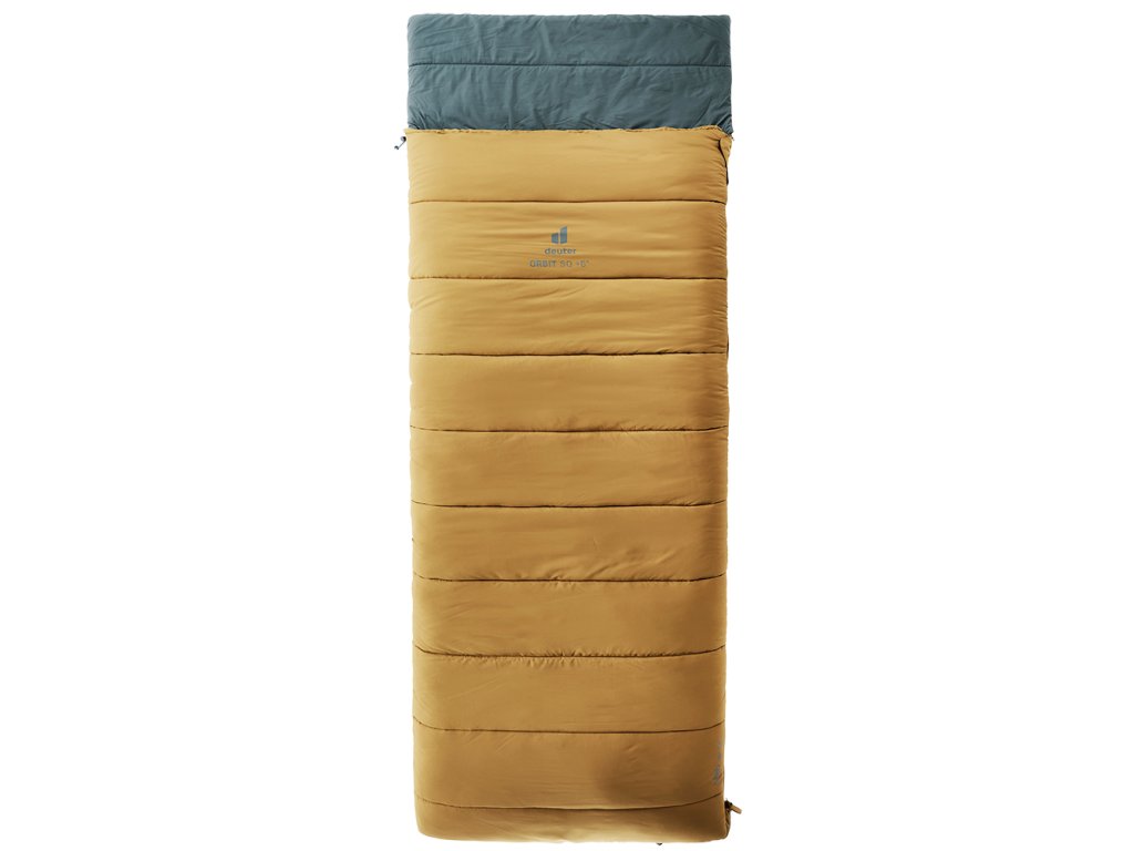 spacák, ve kterém můžete pohodlně spát jako pod peřinou Orbit SQ je letní spací pytel od značky Deuter, který je vyrobený z recyklovaného polyesteru. Má obdélníkový (dekový) tvar, takže v něm máte dost prostoru, jako byste spali pod peřinou. Polštářová část je zvlášť připojena zipem, pro možnost častějšího praní. Vnitřní část spacáku tvoří směs z bavlny, takže spacák při pohybu méně šustí. Ideální pro letní noci ve stanu, cestování v autě nebo spaní na horské chatě. Spacáky s opačnými zipy, lze spojit dohromady. Detaily spacáku Orbit SQ +6°: Vnitřní kapsička na drobnosti, celorozepínací, dvoucestný zip, s ochranou proti zadrhnutí, materiál spacáku příjemně voní.