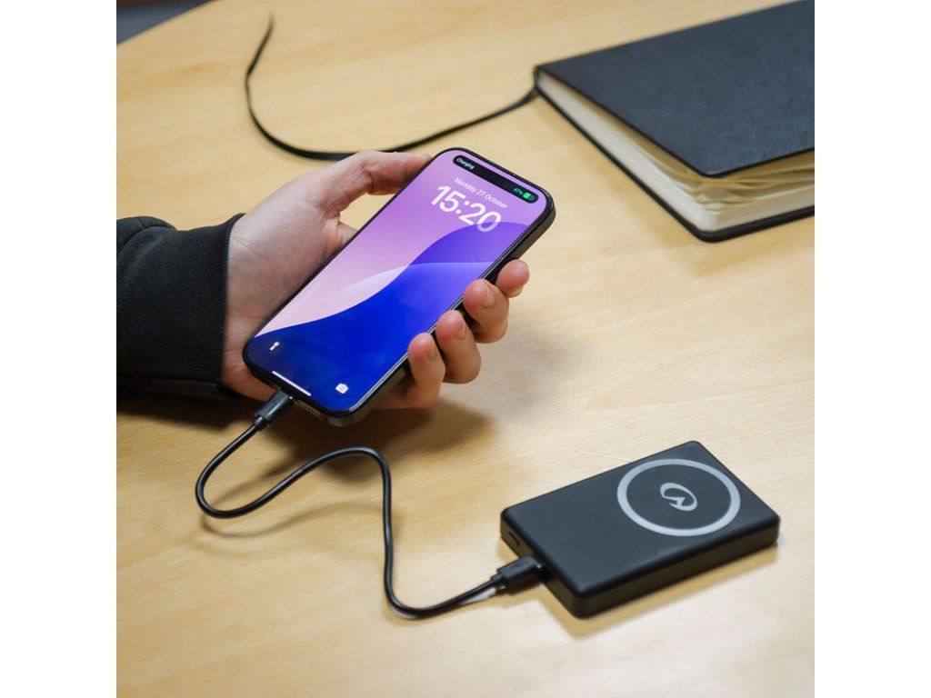 Ultratenká 10 000 mAh powerbanka s bezdrátovým (až 15W) i USB-C rychlo dobíjením (až 20W) vhodná pro iPhone i Android.Ultrakompaktní rychlonabíjecí bezdrátová powerbanka je moderní nezbytností pro každého cestovatele. Díky kapacitě 10 000 mAh zvládne několikanásobně dobít váš telefon. Je kompatibilní s většinou chytrých telefonů a díky podpoře MagSafe nabízí bezdrátové nabíjení až 15 W – rychlé, pohodlné a ideální na cesty.