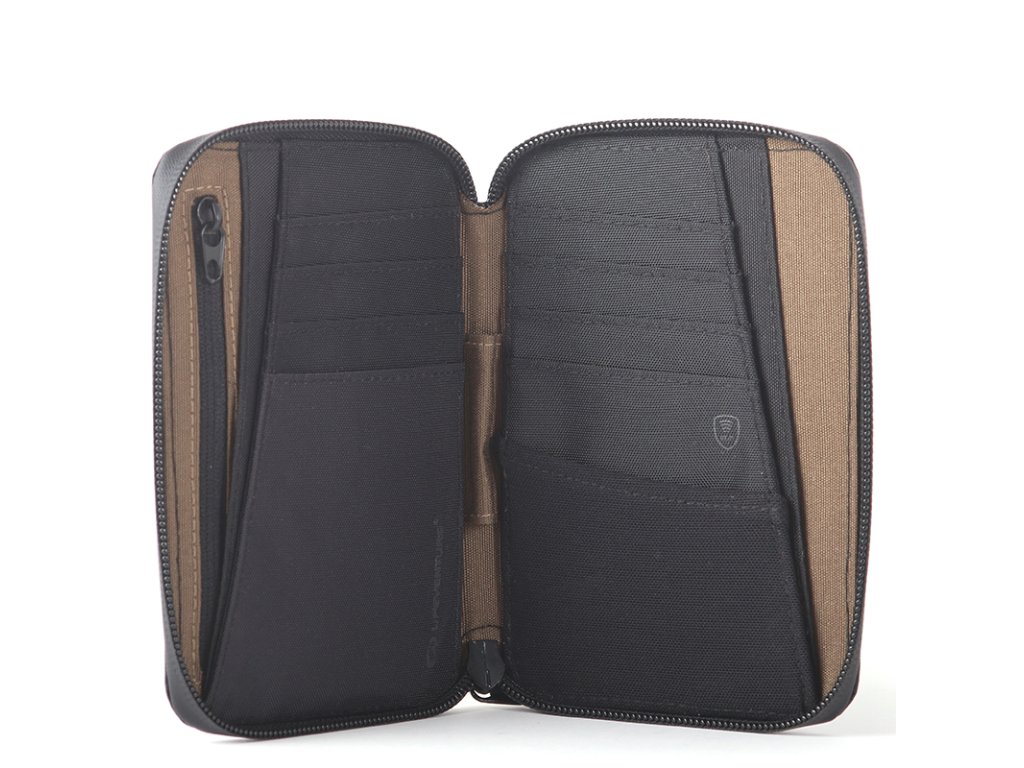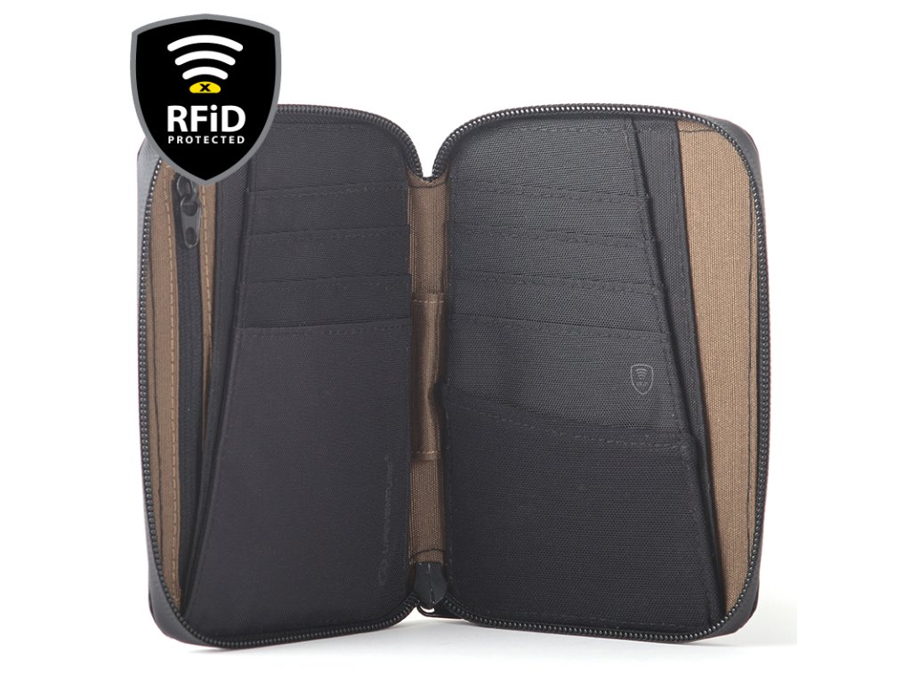 Praktické cestovní pouzdro na dokumenty a doklady, vyrobené z laminované tkaniny X-Pac® VX21 s RFiD ochranou.Praktické cestovní pouzdro na dokumenty a doklady, vyrobené z laminované tkaniny X-Pac® VX21 s RFiD ochranou. Voděodolná konstrukce s lícovou tkaninou o hrubosti 210 denier poskytuje ideální rovnováhu hmotnosti a odolnosti. Celkem můžete využít 8 vnitřních slotů pro karty, 5 vnitřních kapes, 1 vnitřní kapsu se zipem + jednu venkovní kapsu (bez RFiD ochrany). X-Pac Mini Travel Wallet bezpečně ochrání vaše citlivá data (průkazy, kreditní karty, ...) a další pro Vás důležitě dokumenty a doklady.