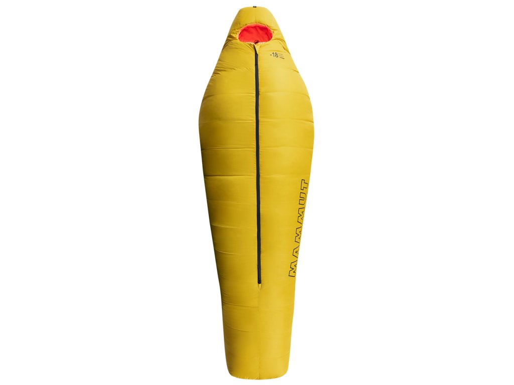 dámský zimní spacák s náplní z recyklovaného peří Pohodlný spací pytel Comfort Down Bag -18°C Women od značky Mammut určený pro spaní v chladných zimních nocích. Má přiléhavý střih mumie, díky kterému nedochází ke ztrátám tepla při pohybu během spánku, anatomicky tvarovanou kapuci a prostor pro chodidla. Svrchní materiál je vodoodpudivý a tak se nemusíte bát ani spaní pod širákem, bez stanu. Výborný tepelný komfort zajišťuje náplň z recyklovaného peří, která je hřejivou a zároveň udržitelnou ekologickou variantou. Navíc díky efektivnímu střihu vzniká během výroby méně odpadu a celkově tak spacák zanechává menší uhlíkovou stopu. výhody spacáku Comfort Down Bag -18°C Women: Střih a délka přizpůsobeny dámské postavě (šířka přes ramena 80 cm, pro chodidla 55 cm), stahovací kapuce a vnitřní límec, krycí léga pod zipem zabraňuje úniku tepla, dvoucestný zip pro snadné odvětrání, jezdec zipu, který brání zasekávání do látky, součástí je transportní a kompresní obal.