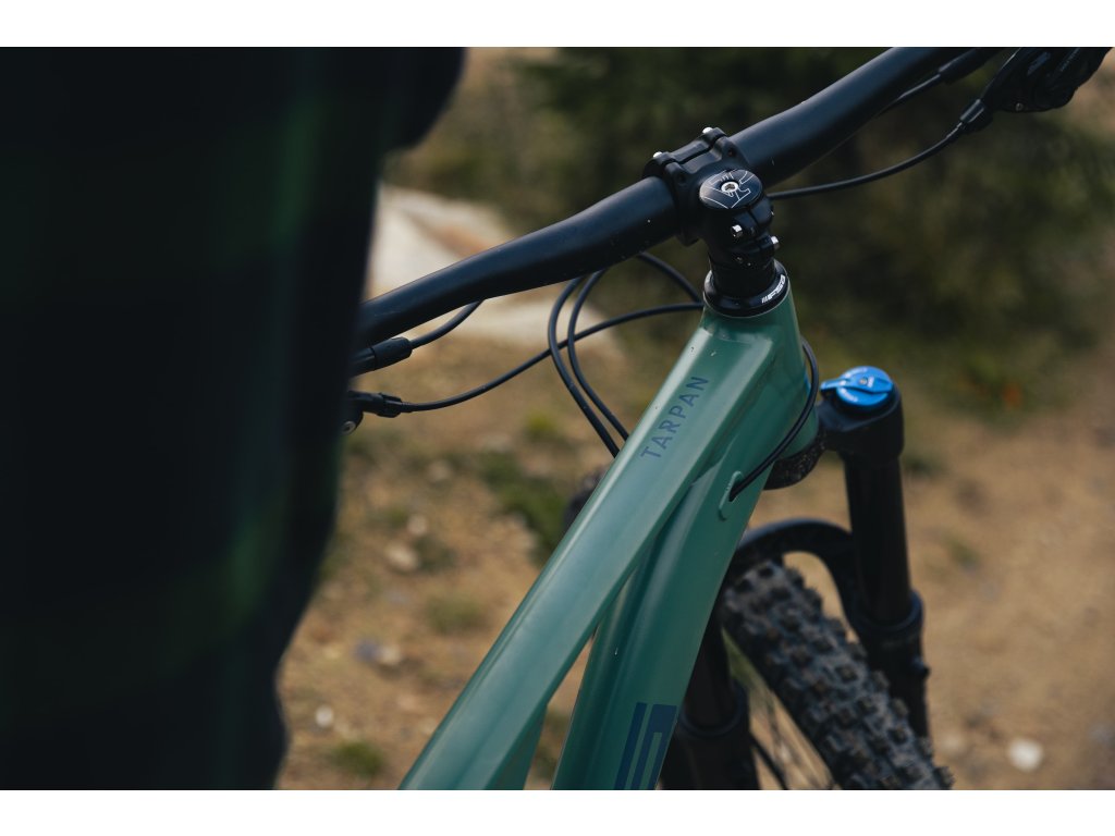 I když dáš na dopadu hranu, tenhle rám to určitě vydrží. Je dělaný z kvalitního zeslabovaného hliníku, má čtyřčepovou konstrukci pro uchycení tlumiče a zdvih 140 mm. Úhel hlavového složení je 64,5 stupně což napomáhá bezstarostnému vedení kola po trailu.