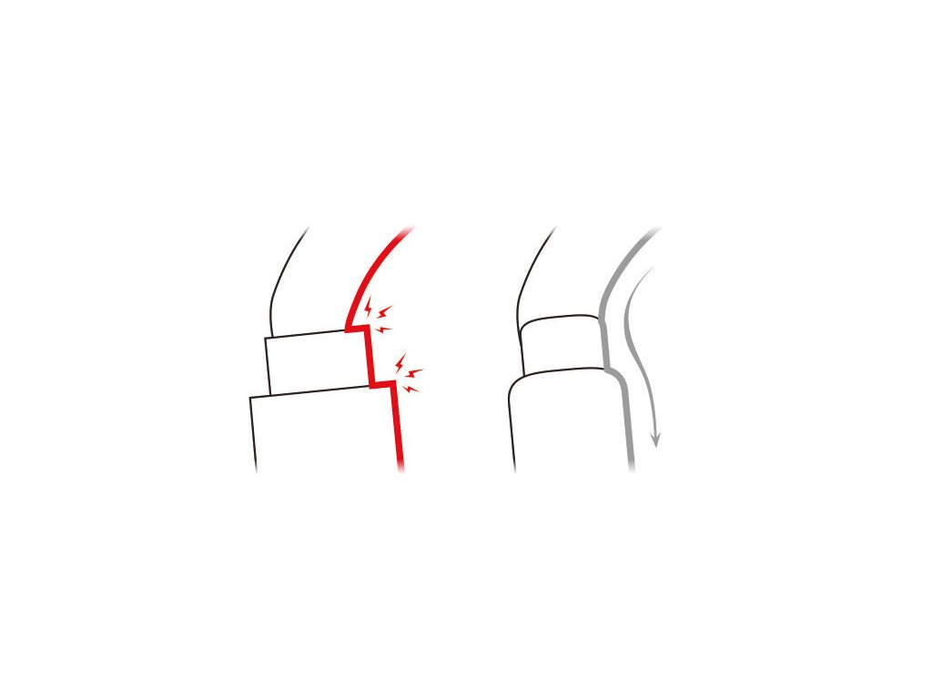 - Hladký povrch na vnitřní straně snížuje riziko zachycení nebo příčného zatížení