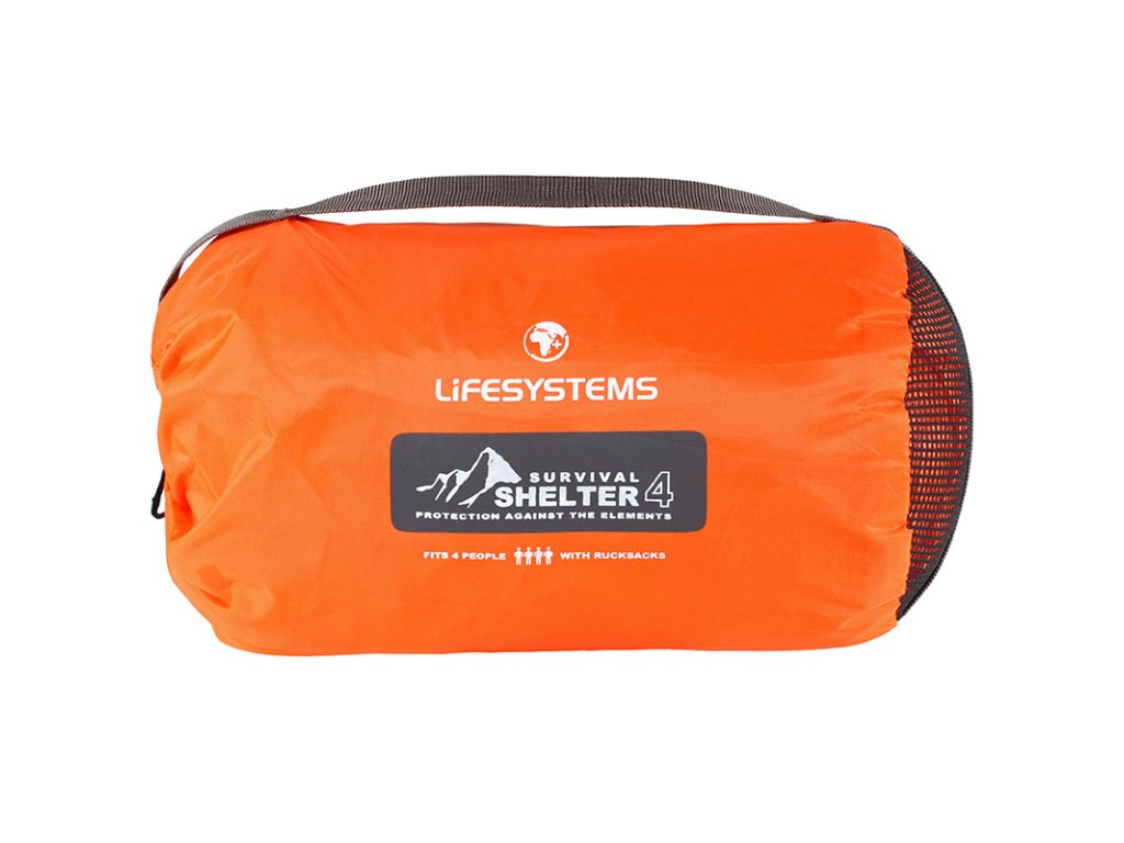 Nouzový úkryt pro 4 osoby, který se dá využít i při přestávkách na jídlo, plánování trasy a podobných příležitostech.Survival Shelter 4 je nouzový úkryt pro 4 osoby, který se dá využít i při přestávkách na jídlo, plánování trasy a podobných příležitostech, která vyžadují teplejší prostředí. Úkryt je vyroben z odolného tkaniny s polyuretanovým zátěrem. Survival Shelter 4 je nepromokavý do 5000mm vodního sloupce a má podlepené švy. Je opatřen okénkem s větracím otvorem a na horní straně má reflexní pruhy. Zavírá se pomocí spodní stahovací šňůry a poskytuje vodě odolná místa na sezení. Je určen pro 4 osoby a jejich batohy.