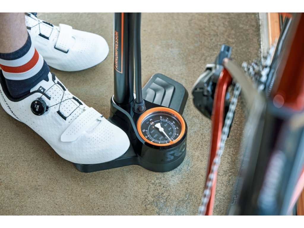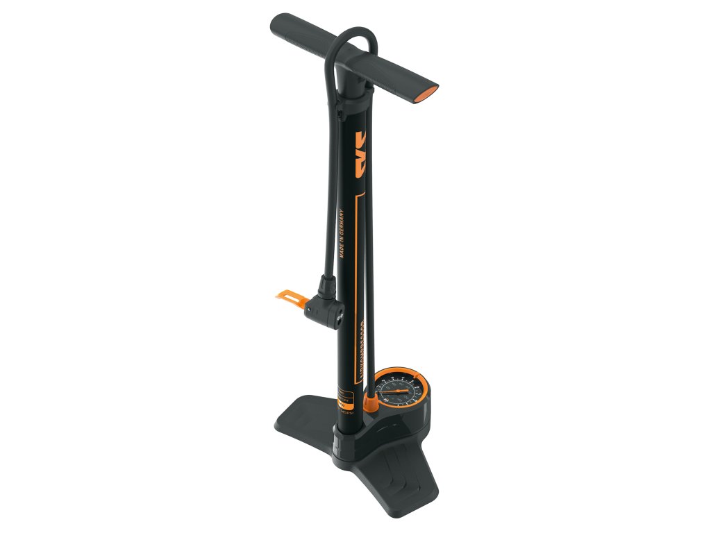 SKS Airkompressor 10.0 je servisní pumpa, která dosahuje maximálního tlaku 10 barů, má výšku 650 mm a objem stlačení 436 cm³. Je vybavena stabilní pevnou rukojetí, plastovou základnou pro vysokou stabilitu, čitelným tlakoměrem o průměru 80 mm a hadicí o délce 900 mm.