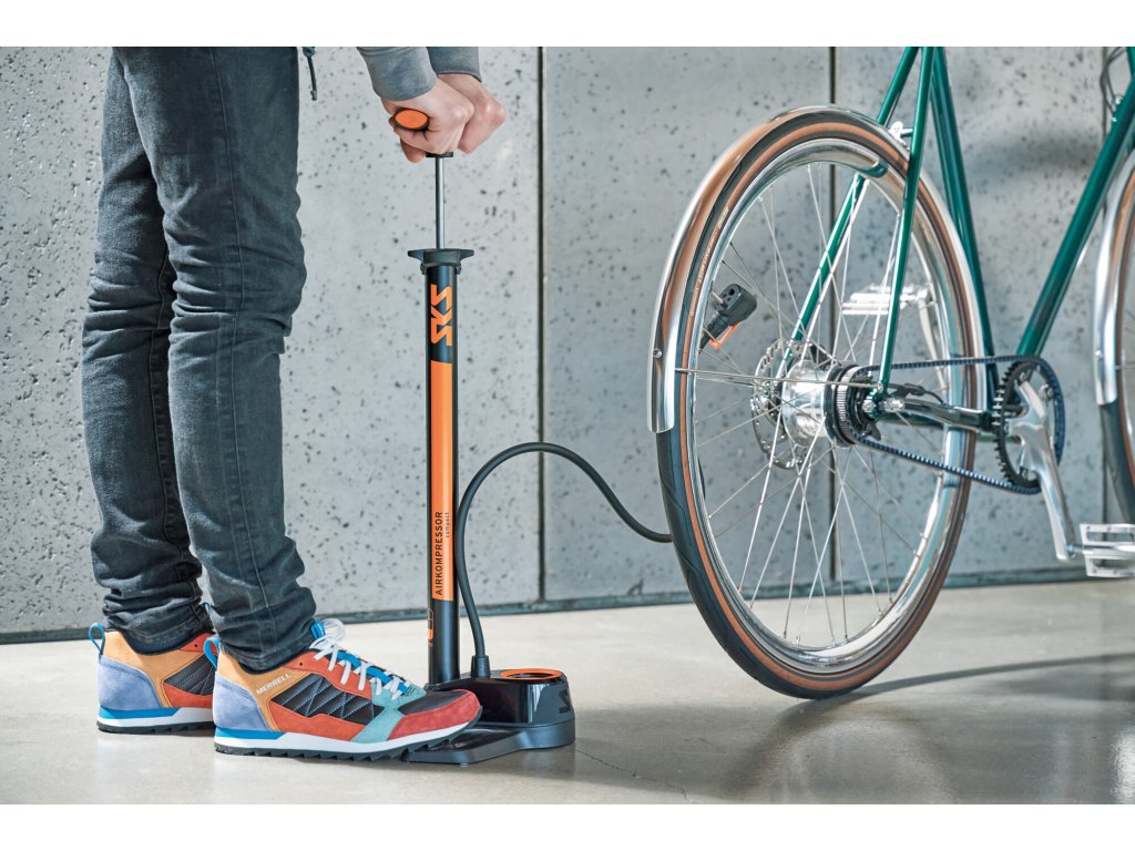 Každý rok se po celém světě vyhodí sedm miliard tun odpadu, často kvůli vadným produktům, které by mohly být opraveny. SKS proto vyvinulo nové servisní pumpy, které umožňují snadnou výměnu opotřebitelných dílů, jako jsou těsnění nebo tlakoměry. Díky tomu lze pomocí několika jednoduchých kroků starou pumpu opět přeměnit na plně funkční. Pumpa dosahuje maximálního tlaku 10 barů, má výšku 600 mm a objem stlačení 385 cm³. Je vybavena stabilní pevnou rukojetí, plastovou základnou pro vysokou stabilitu, čitelným tlakoměrem o průměru 63 mm a hadicí o délce 850 mm.
