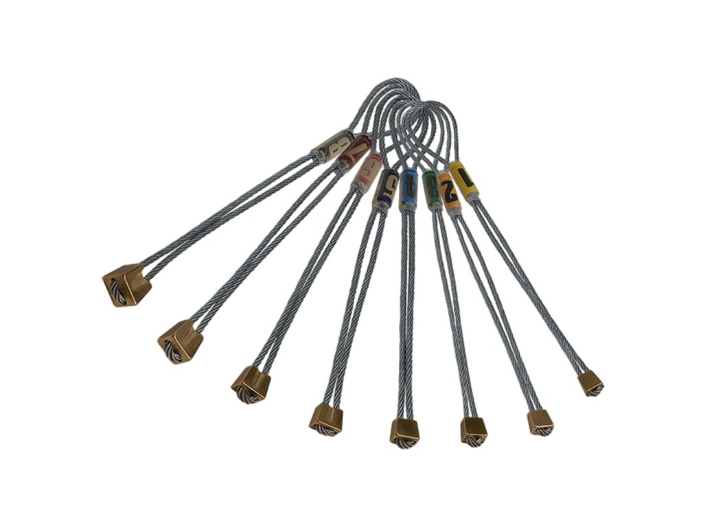 Mosazný vklíněnec klasického tvaru, vhodný do tenkých trhlin a spárek. Pevné ocelové lanko, barevné rozlišení velikostí, pěkné dílenské zpracování. Technické údaje Velikost Pevnost A (kN) Pevnost B (kN) Hmotnost (g) 1 6 - 17 2 6 - 18 3 7 - 18 4 7 4 26 5 8 7 28 6 8 7 30 7 9 8 34 8 9 8 38