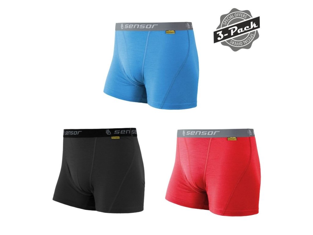 SENSOR MERINO ACTIVE 3-PACK pánské trenky černá/červená/modrá