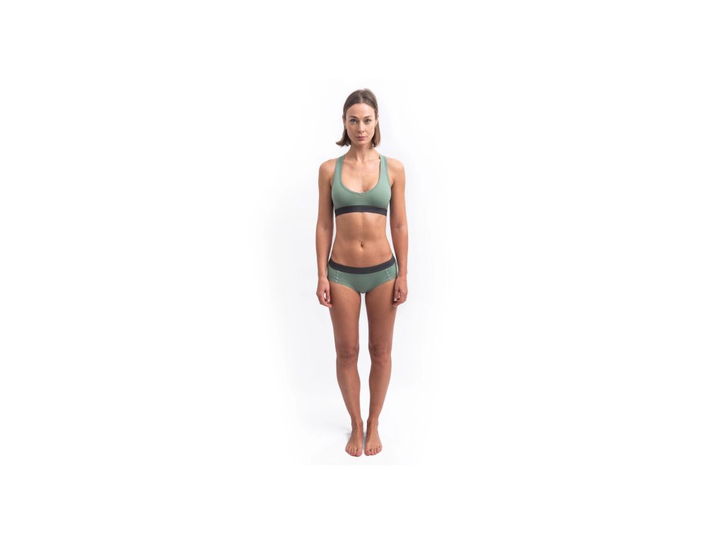 Funkční podprsenka vyrobená z úpletu unikátní konstrukce kombinující polyester na vnitřní straně a vysoce kvalitní Merino vlnu z Nového Zélandu. Hlavní výhodou této kombinace je to, že polyester urychluje transport potu do vnější vlněné vrstvy, která má jedinečný antiodor zabraňující tvoření pachů a navíc má skvělou termoregulační funkci. Vnitřní tenká polyesterová vrstva eliminuje "kousání" vlny u lidí, kteří jsou na tento jev citliví. Prádlo je ideální pro sportování v extrémních klimatických podmínkách: vysokohorská turistika, skialpinismus, horolezectví.
