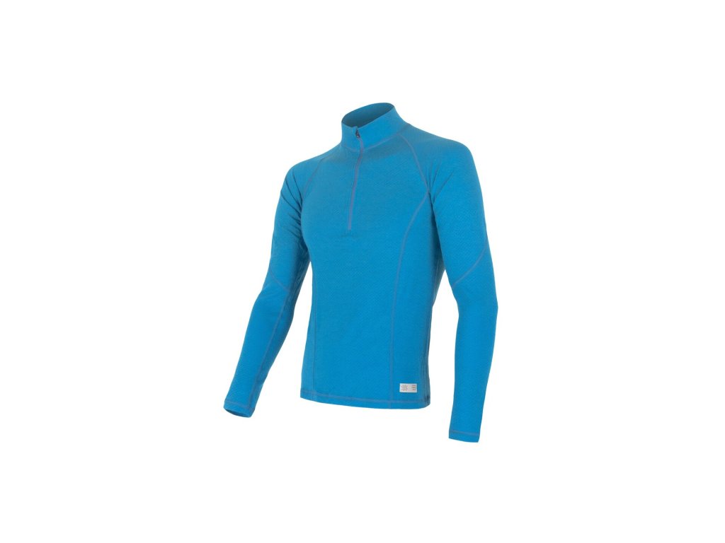 SENSOR MERINO DF pánské triko dl.rukáv zip modrá