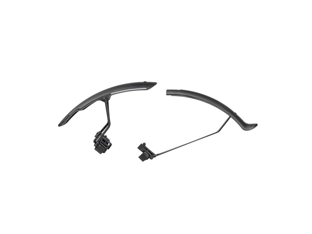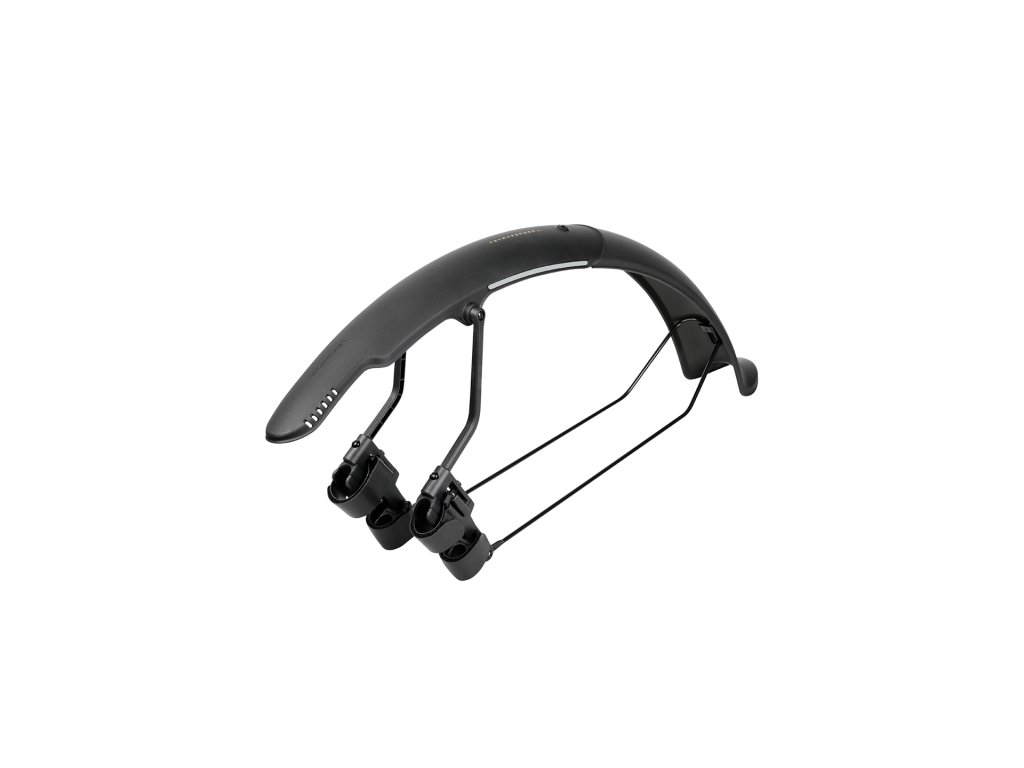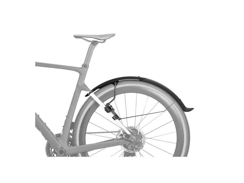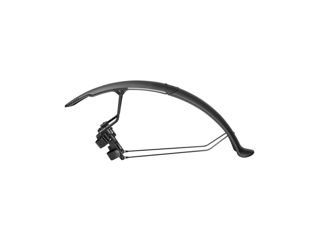 Zadní dvoubarevný blatník s rychlou, bezpečnou a jednoduchou montáží. Nastavitelné vzpěry zajišťují těsnější přilnutí k pneumatice a vynikající ochranu před blátem, zatímco vysoce leštěná spodní strana pomáhá předcházet usazování nečistot a usnadňuje čištění. Přiložené reflexní nálepky 3M zajišťují bezpečnost v noci.