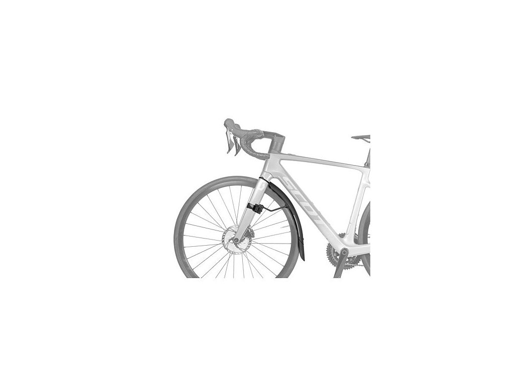 Přední dvoubarevný blatník s rychlou, bezpečnou a jednoduchou montáží. Nastavitelné vzpěry zajišťují těsnější přilnutí k pneumatice a vynikající ochranu před blátem, zatímco vysoce leštěná spodní strana pomáhá předcházet usazování nečistot a usnadňuje čištění. Přiložené reflexní nálepky 3M zajišťují bezpečnost v noci.