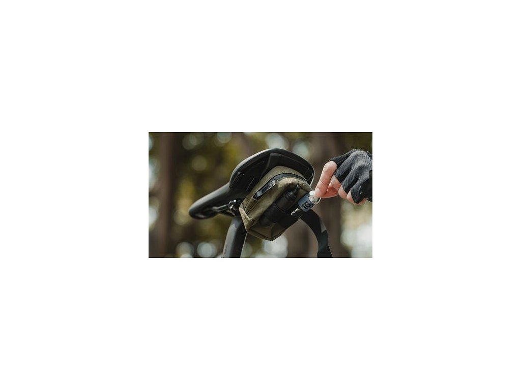 Kompaktní podsedlová brašna s popruhem na suchý zip pro přepravu duše, montpák, případně dalších drobností pro bezpečnou a jistou jízdu. Vestavěná protiskluzová tkanina zajišťuje bezpečnost při upevnění. K dispozici jsou tři velikosti a dvě barvy.