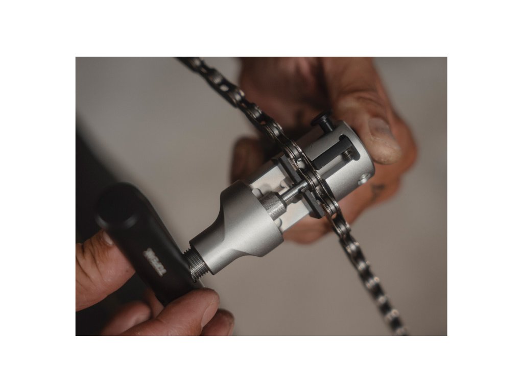 Precizně zkonstruovaný profesionální nýtovač řetězu s unikátním designem pro rychlé zarovnání řetězu.