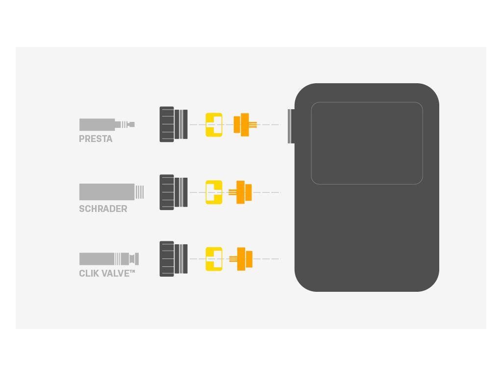 Kompatibilita s Presta, Schrader i Clik Valve™