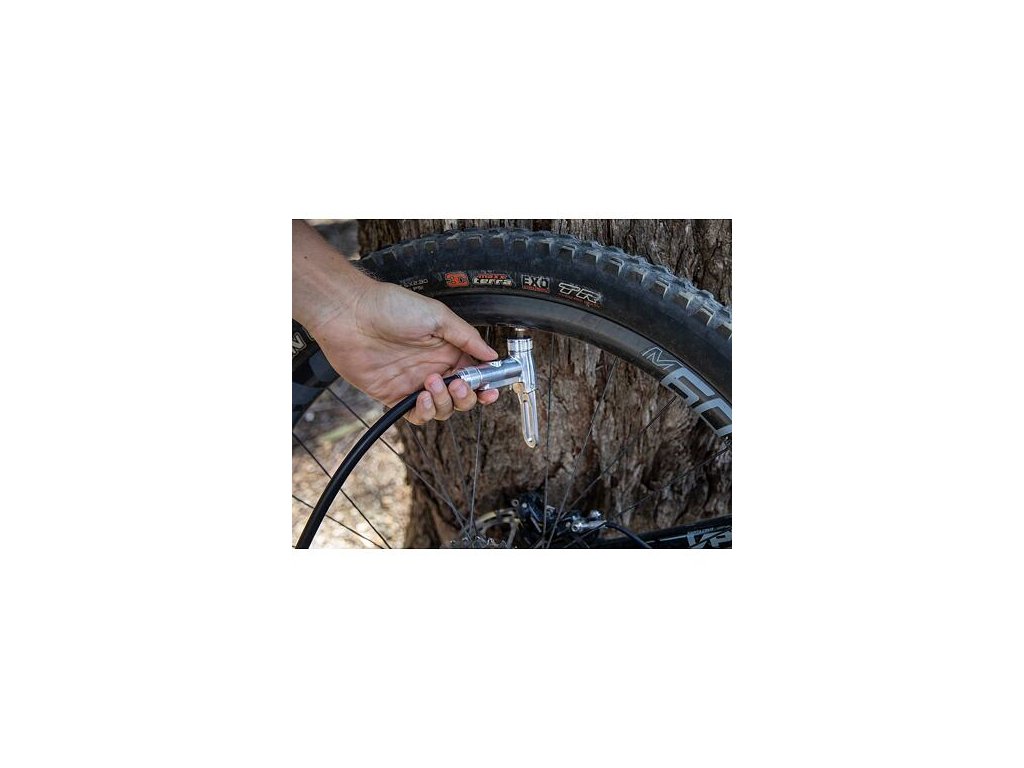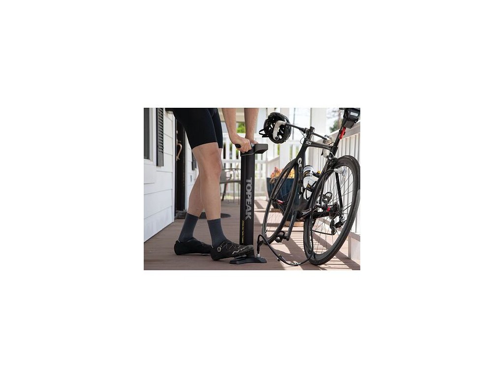 Ultimátní dílenská cyklo pumpa s dvoukomorovým systémem pro snadné plnění silničních i MTB kol. Technologie TwinTurbo využívá toho, že při vytažení rukojeti se stlačí vzduch z velké komory do malé, která následně při stlačení rukojeti buď vypustí vzduch pod velkým tlakem do silničního kola nebo vypustí velký objem vzduchu do MTB kola. Díky hlavici SmartHead™ DX1 s extra dlouhou hadicí a upouštěcím tlačítkem snadno připojíte galuskový i auto ventilek.